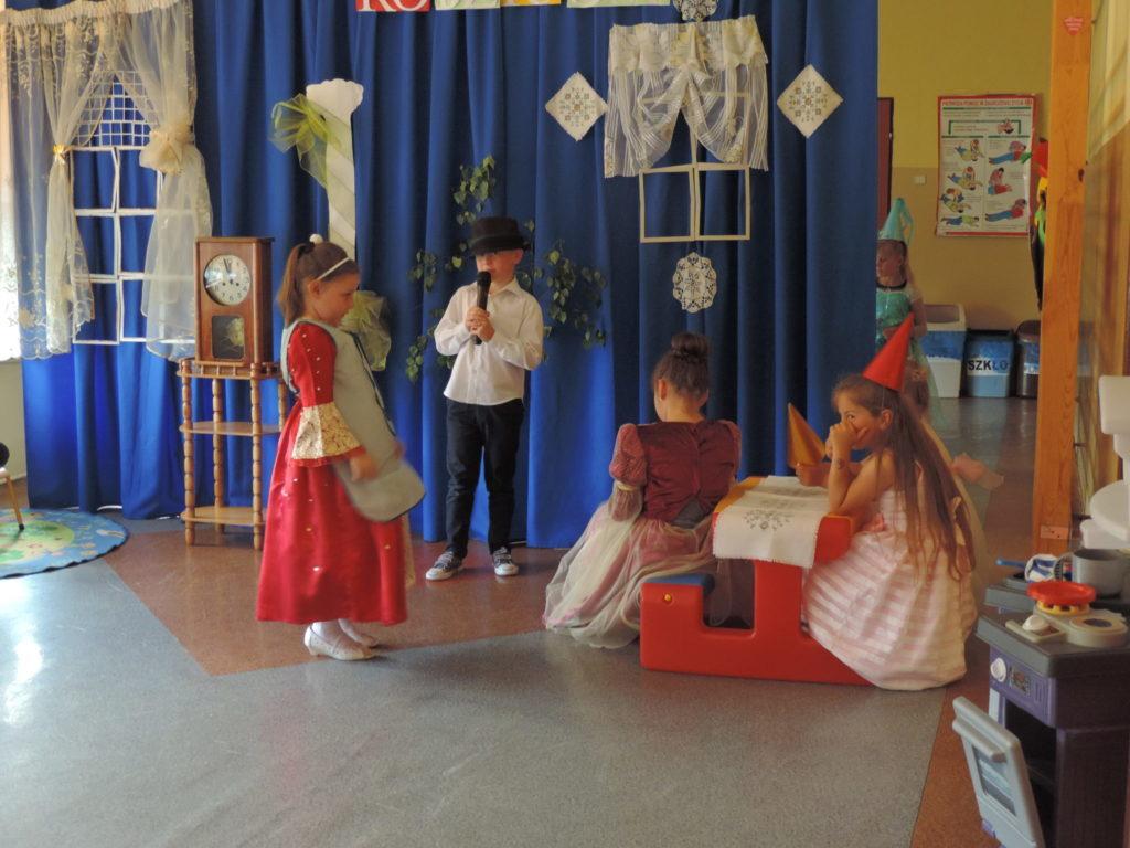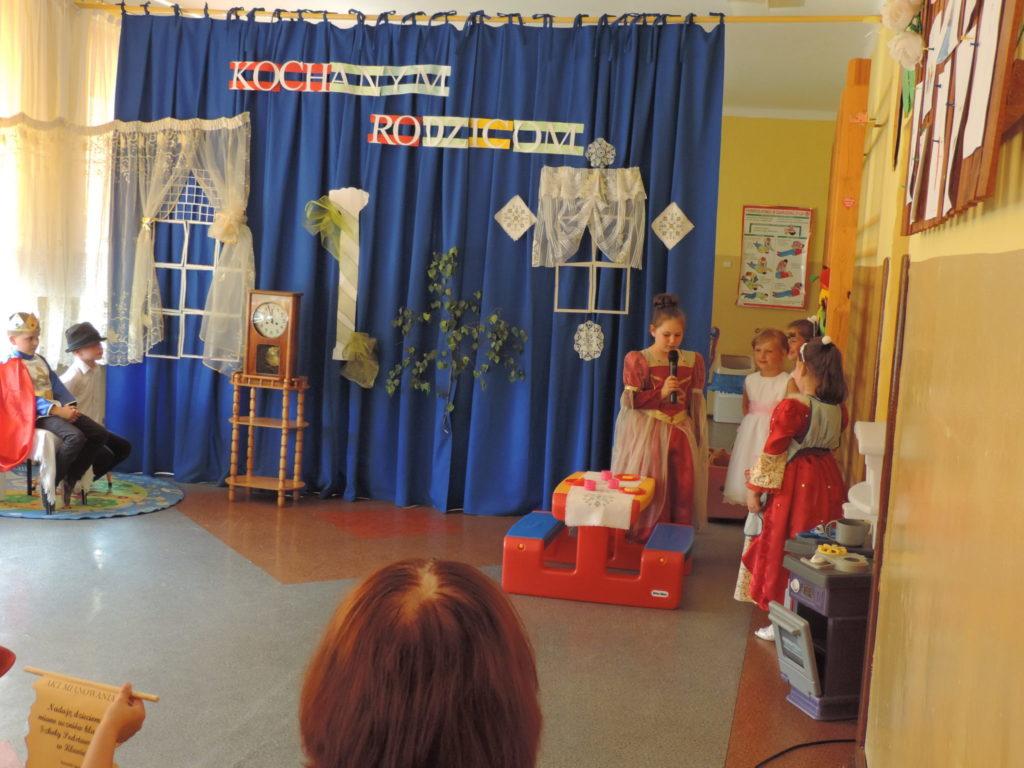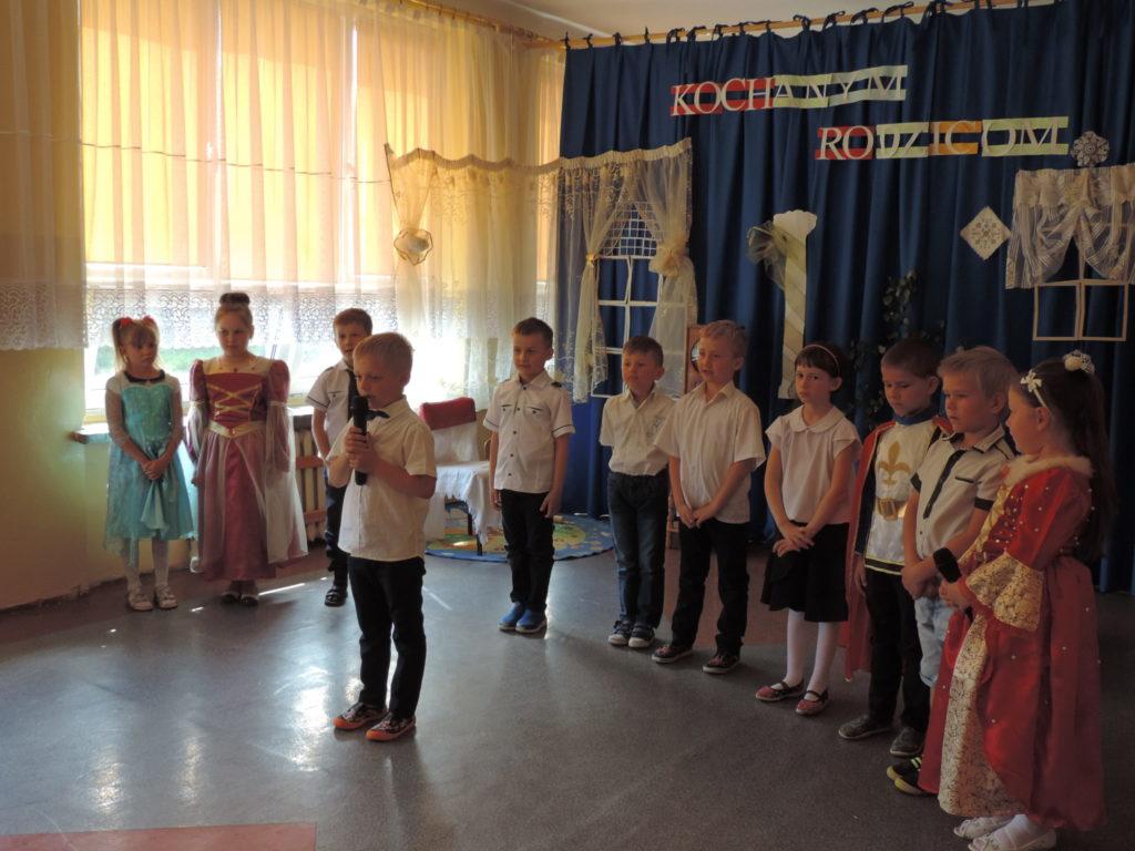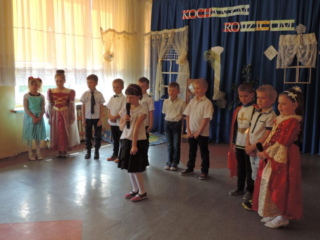 Kochanym Rodzicom swoje życzenia przekazały najmłodsze dzieci. W pierwszej części występu dzieci recytowały wiersze i śpiewały piosenki. Następnie maluchy pokazały swoje umiejętności aktorskie i przedstawiły inscenizację bajki „Kopciuszek”. Na koniec dzieci zaśpiewały rodzicom „Sto lat” i wręczyły laurki.