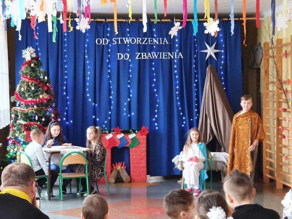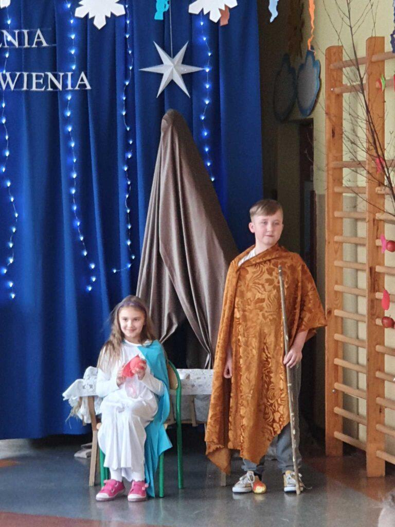 Tegoroczne jasełka zostały przygotowane przez uczniów klas 1-4 pod opieką p. Katarzyny Wilk oraz Kamili Szczegielniak. Uczniowie mieli możliwość zaprezentowania swoich zdolności aktorskich i wokalnych. W pięknej scenografii i w specjalnie przygotowanych kostiumach wprowadzili zgromadzoną publiczność w świąteczny nastrój. Mogliśmy po raz kolejny przeżyć historię narodzin Jezusa Chrystusa. Przedstawienie przeplatane było kolędami i pastorałkami także w wykonaniu uczniów.