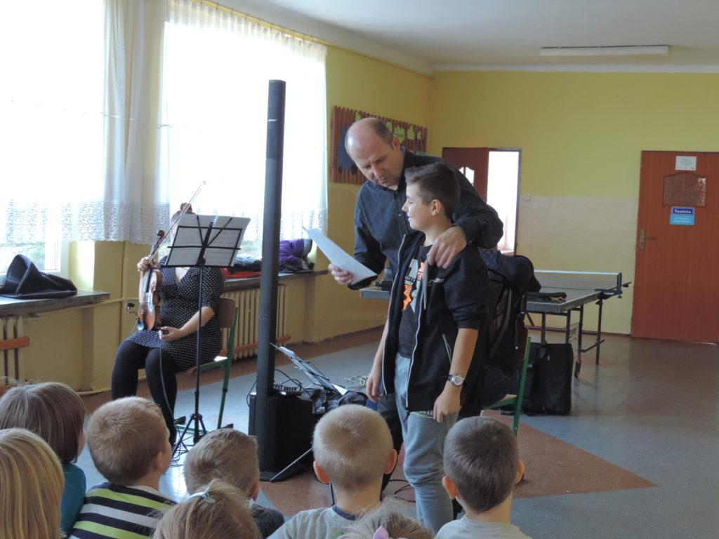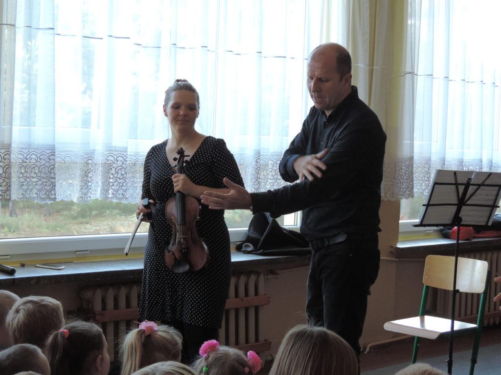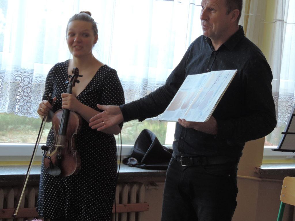 Tym razem muzycy wprowadzili nas w świat tanga. Zapoznali nas z tym pięknym tańcem przy akompaniamencie skrzypiec i akordeonu. Poznaliśmy budowę pierwszego z wymienionych instrumentów, a także posłuchaliśmy kilka utworów prezentujących tango,m.in “Tango Milonga” czy znane nam wszystkim “Despacito” oczywiście zagrane w rytmie tanga.