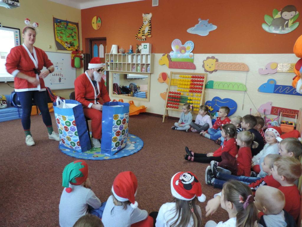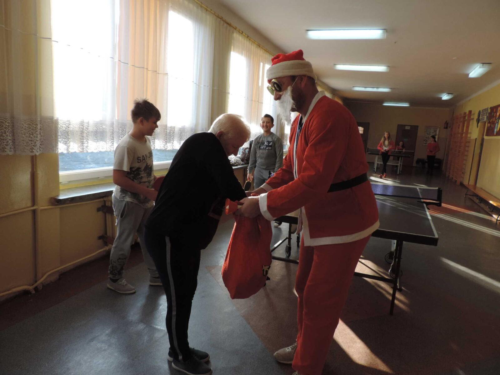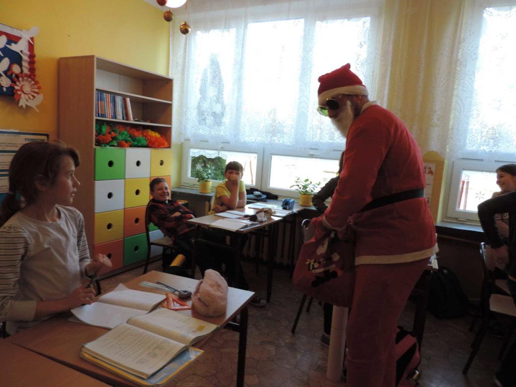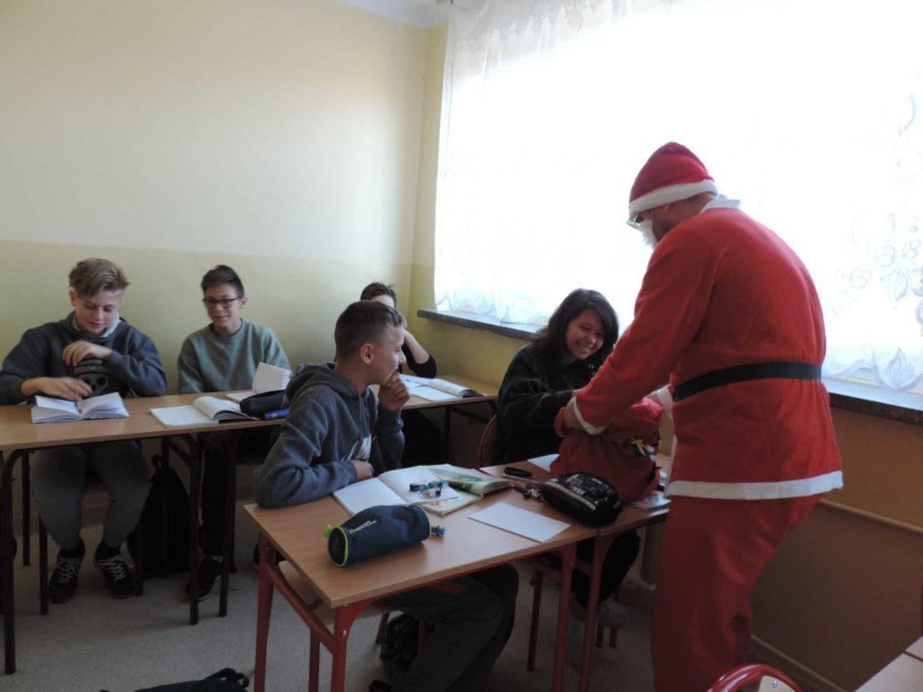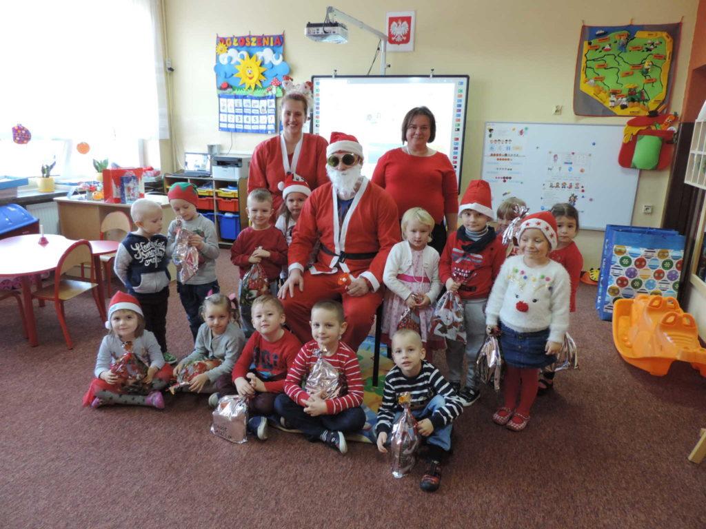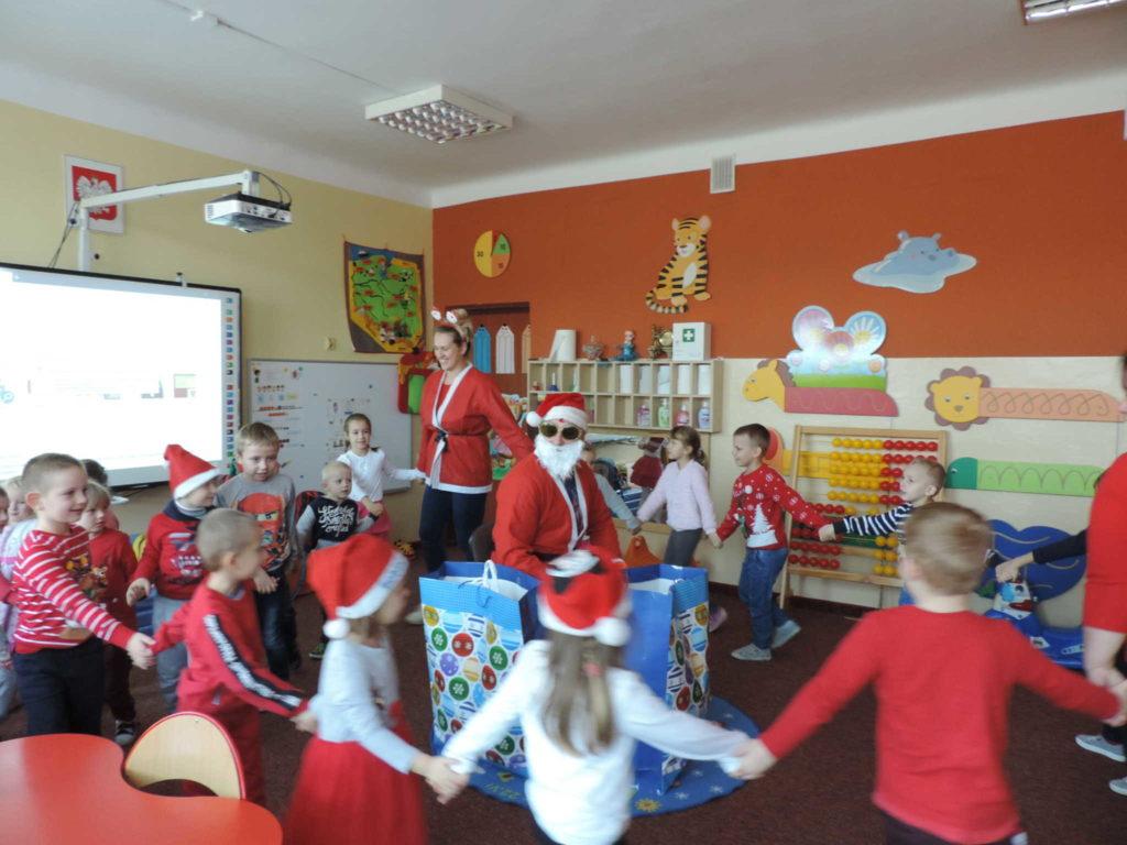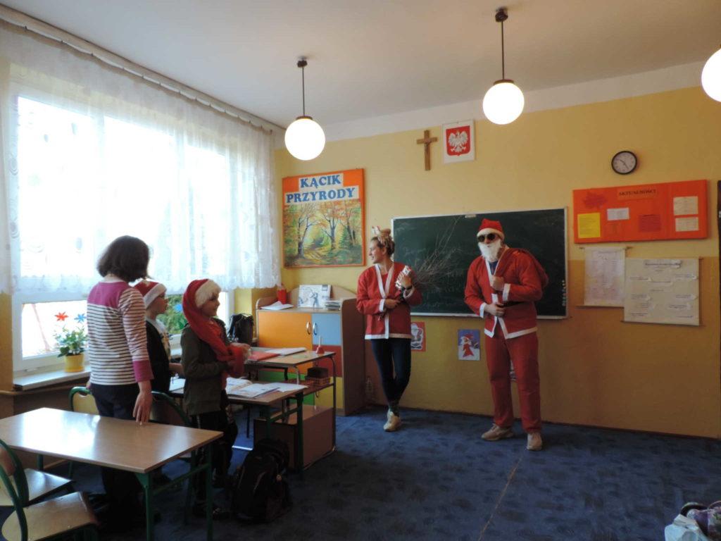 6 grudnia jest dniem imienin Mikołaja. Od samego rana można było dostrzec uczniów i nauczycieli ubranych na czerwono lub w pięknych mikołajkowych czapkach. Jaka była radość, gdy do szkoły zawitał nie kto inny jak Święty Mikołaj! Dzieci i nauczycieli witali gościa z ogromnym entuzjazmem. W podzięce za przyniesione prezenty najmłodsi zaśpiewali Mikołajowi piosenkę oraz wykonali piękne portrety przy pomocy waty. Mikołaj i Śnieżynka nie zapomnieli również o starszych uczniach, z pomocą grona pedagogicznego przygotowali dla grzecznych uczniów i nauczycieli słodką niespodziankę. Nie obyło się również bez rózg dla tych mniej grzecznych. Każdy tego dnia był uśmiechnięty i miał dobry mikołajkowy humor. Kto wie, może Mikołaj odwiedzi nas również za rok?