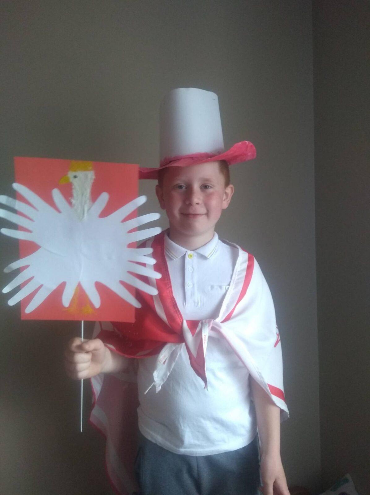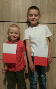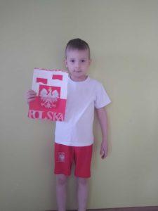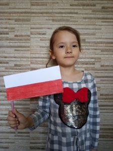 Po wysłuchaniu wiersza Cz. Janczarskiego „Co to jest Polska” zamieszczonego na filmie Youtube przedszkolaki dowiedziały się, dlaczego polska flaga jest biało-czerwona. Następnie samodzielnie ją wykonały. Na załączonych zdjęciach sześciolatki prezentują swoje prace: