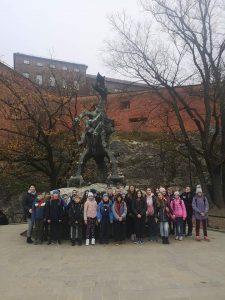 wzbudziło ogromne zainteresowanie wśród uczniów. Dalsza część planu wycieczki to „Kopiec Kościuszki” i widok na panoramę Krakowa. Punkt kulminacyjny naszego wyjazdu to Wawel, Kościół Mariacki, spacer po mieście i zakupy w Sukiennicach, uczniowie odwiedzili też legendarnego ziejącego ogniem Smoka Wawelskiego. Bardzo udany wyjazd zakończył się wspólnym posiłkiem.